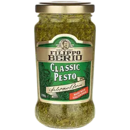 päevalilleõli, vesi, tomatikontsentraat (11%, Itaalia), Genova PDO basiilik (5%), RICOTTA JUUST (VADAK (pastöriseeritud PIIM), pastö riseeritud KOOR, sool, happesuse regulaator (E509)), Grana Padano JUUST (PIIM, sool, laap, säilitusaine (lüsosüüm MUNAST)), INDIA PÄ HKEL, sool, tomatihelbed, maisitärklis, suhkur, modifitseeritud maisitärklis, must pipar, kuivatatud tšilli, happesuse regulaator (E 270).Võib sisaldada vähesel määral MAAPÄHKLIT, muid PÄHKLEID, KALA ja SINEPIT.Erandjuhul võib sisaldada pähklikoori.